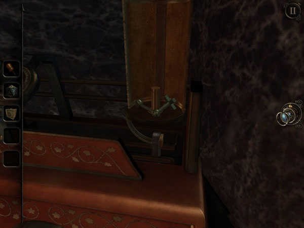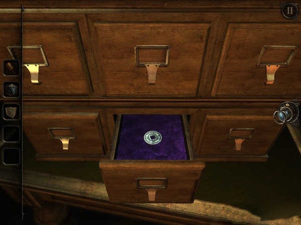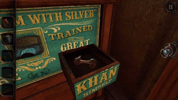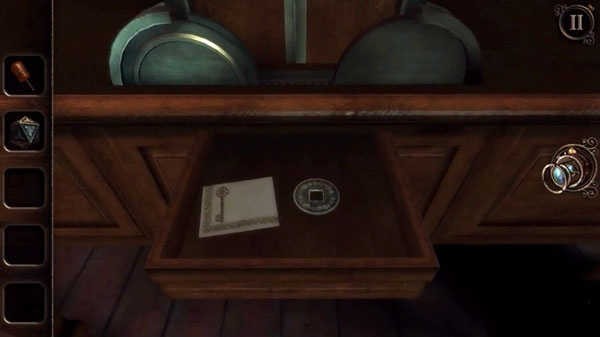 也许你在一开始的时候就已经很在意,在图书馆里有一台标着“1795”的接听电话,但就是用不了。终于,它在此刻响了,你可以拨动它的开关,让旁边的录音机运作起来。接着你会获得又一个手柄,返回地窖,将这手柄放置于一个有着六个小柜的木柜中,拉动一下,木柜就会运作起来。