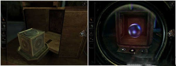 先回到图书馆的阁楼上,拿走机关书上方形盒子,再回到花房,将方形盒子放于重塑机上变成球状,然后取走球状盒子回到阁楼,放于机关书的右侧凹槽。将机关书打开后会出现一个立体书,用透视镜进入内部,你会发现一个迷你播放机,取走它里面的录音带,将其放到“1795”电话旁的录音机里。