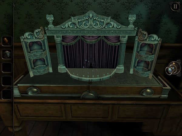 同样,回到塔罗牌游戏机前将硬币放于入口中,你可以得到又一个新的手柄。这个手柄是花房中播放机缺失的零件。将其放回到播放机中,拉动调整播放机的指针,直到播放机唱起歌来。此时,隔壁的电话已经可以正常使用,但先别急着用。
