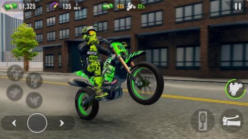 1、在最狂野的特技摩托游戏中,施展疯狂的特技和翻转动作探索布满坡道、屋顶和狭窄车道的开放世界街道。