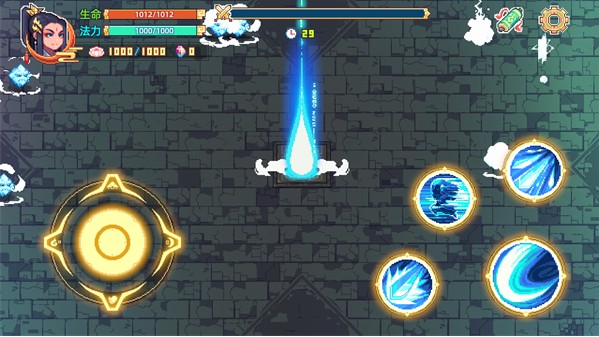 2、直接进入游戏就是探索,点击这个摇杆滑动英雄前往各处,争夺这个世界的强者之位,提升更多的修仙法力;