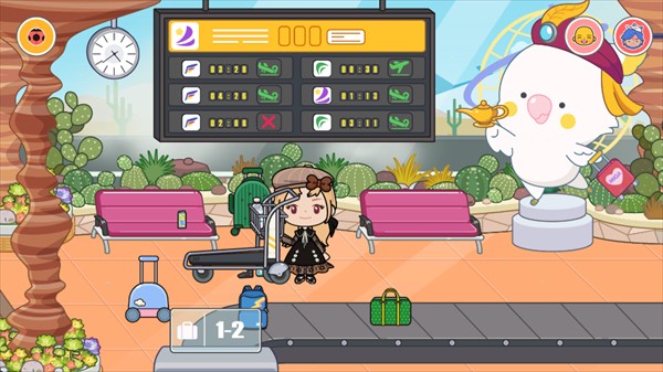 5、人物可进入飞机场,在里面有航班信息,还有行李箱