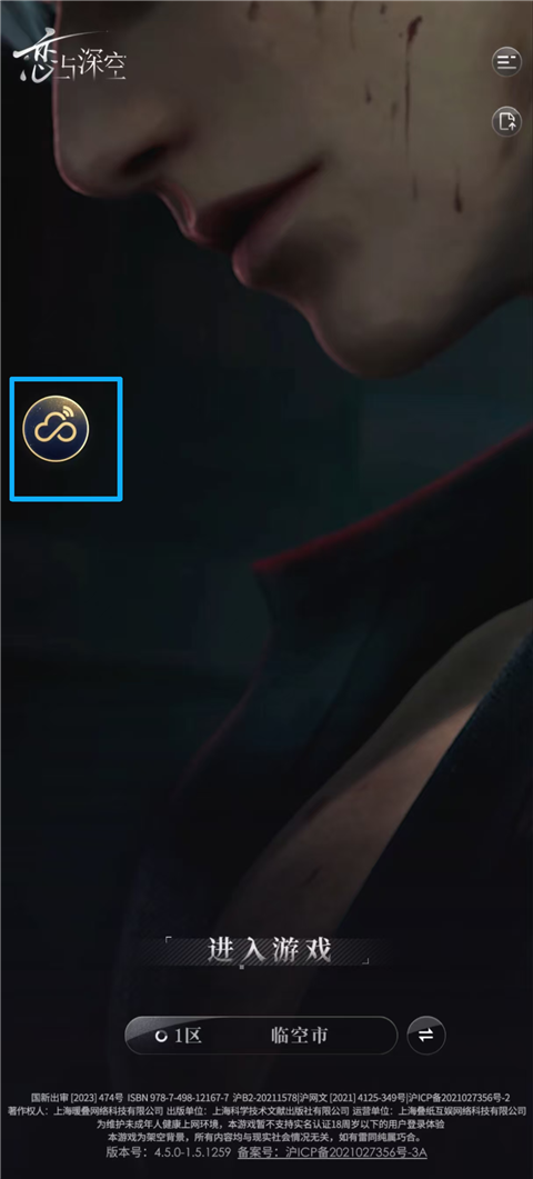 打开云恋与深空,启动游戏后,点击面板上的悬浮球。