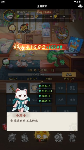 全名店长是一款好玩的休闲放置挂机养成类的游戏,在这里玩家将开启一场最为独特的修仙之旅,通过不断点击你的电脑,通过上网来获取更多独特的装备,各类的品质都有,获取更多的装备的词条,全面强化你的店长的角色,快来下载吧。