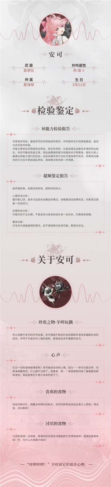 黑海岸成员之一,黑白羊咩时常陪伴左右。她的元气开朗照耀四周,但鲜少有人知道她直面黑暗的恐惧