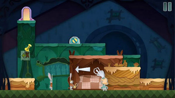 1、按照教学,将蓝色方块向左拖动,触发剧情和爱丽丝对话以后爱丽丝进入镜子里。