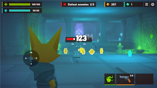2、在关卡中,将武器对准敌人即可自动攻击,将地图中的所有敌人消灭后即可通过传送门进入下一关卡。