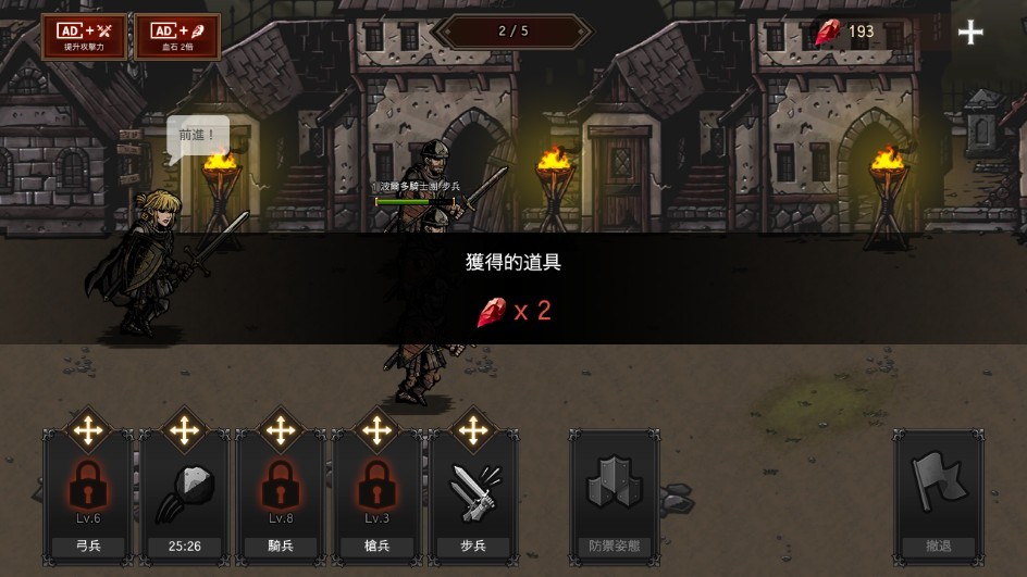 3.在一个又一个的关卡之中,不断推进闯关,全面强化你的兵力