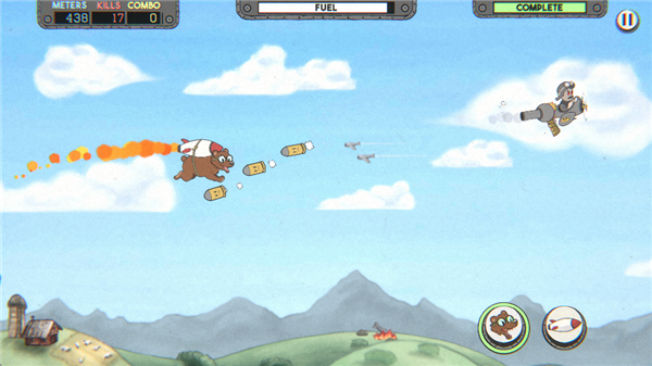 熊熊飞机小游戏是一款采用了美式卡通画风的横版冒险闯关游戏,这款游戏采用了别样的卡通游戏画风,带给玩家与众不同的视觉效果感受,在这款游戏中还有各种不同的关卡等待玩家来挑战,享受充满趣味的冒险游戏之旅,游戏中还有搞笑的剧情和不同的道具供玩家使用,想要体验这款游戏的玩家快来下载游玩吧。