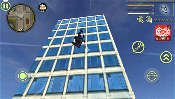 3、游戏里你可以像蜘蛛侠一般使用钩爪飞檐走壁,跑到城市最高处欣赏美景;