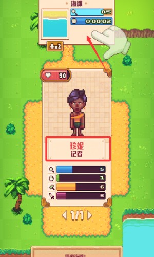 2、查看角色珍妮属性,准备海滩探索挑战。