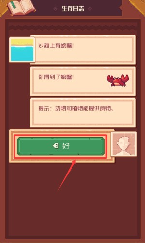 3、点击好按钮,确认获得螃蟹食物奖励。