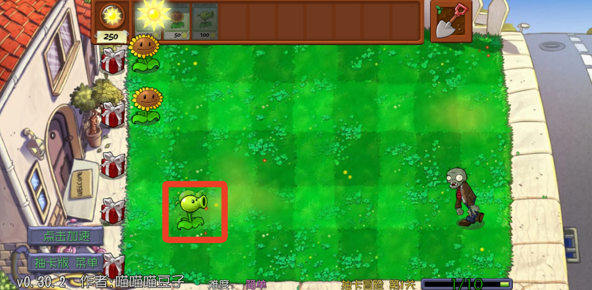 1、白色低级卡(15%概率抽取):三线射手、裂荚射手、豌豆投手、低坚果、双线射手、反向豌豆射手