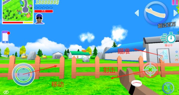 1、进入到游戏中,我们首先需要知道基础的操作,左边按钮控制角色移动,右边则有射击瞄准跳跃等等键。
