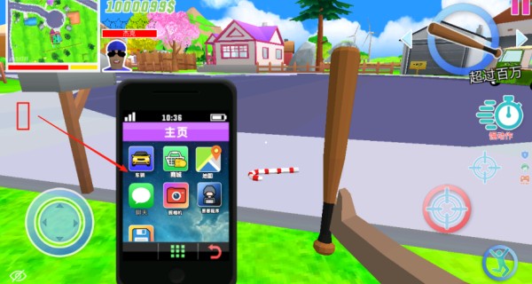3、点击这里的手机图标可以打开手机,在手机中我们可以进行很多的操作,比如打开地图,解锁更多不同的车辆。