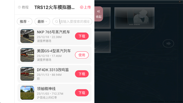 trs12火车模拟器内置模组版是一款十分真实的火车驾驶模拟游戏,这款游戏采用了非常精致的游戏画面,带给玩家出色的视觉效果感受,游戏中还有各种不同的模组等待玩家来体验,带给玩家更加有趣的游戏体验,而且玩法十分自由,玩家可以按照你的想法来进行建造,想要体验这款游戏的玩家快来下载游玩吧。