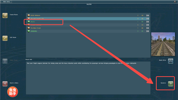 8、然后返回【ROUTES】页面,找到刚才保存的地图,点击右下角【Sessions】进行游玩。