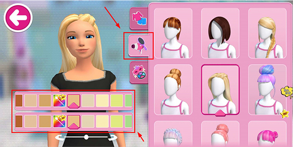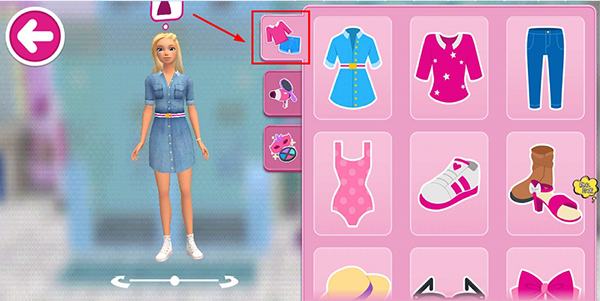 1、进入芭比梦想豪宅游戏,点击芭比图标,即可进入芭比换装页面