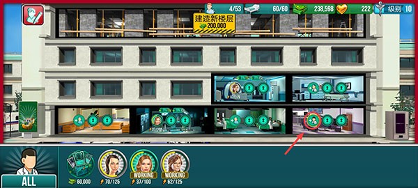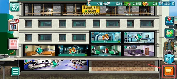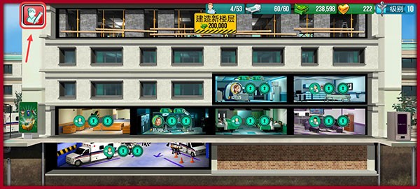 8、建好医院后,还需要建设病房让病人可以居住,点击商店按钮可以访问病房和其他科室。