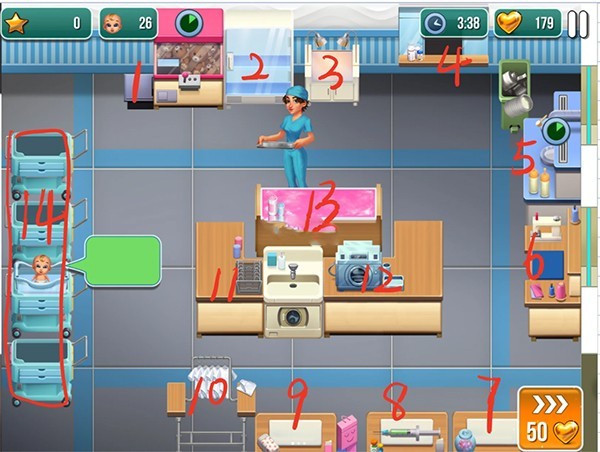 10、每个科室都有自己的功能,在科室治疗患者将产生现金用来扩建医院。