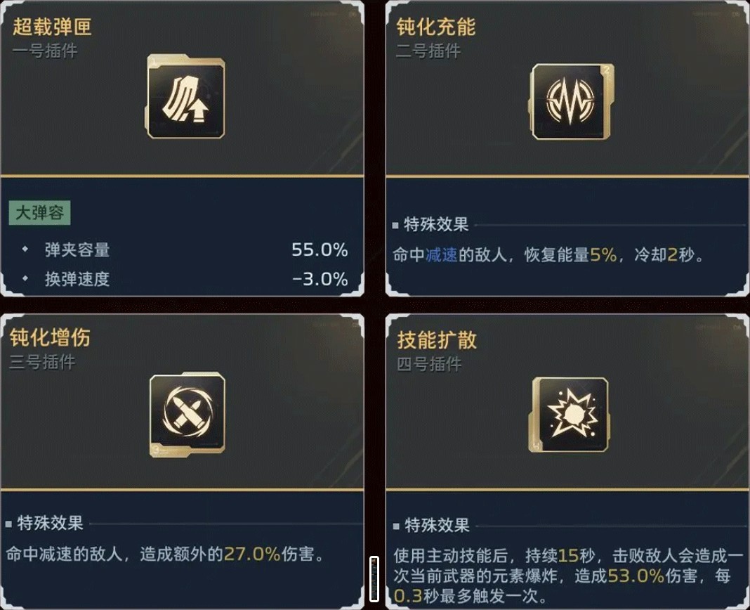每把主副武器一般情况下都可装配四个武器插件,不同的插件组合,是打造逆行者专属流派玩法的关键。