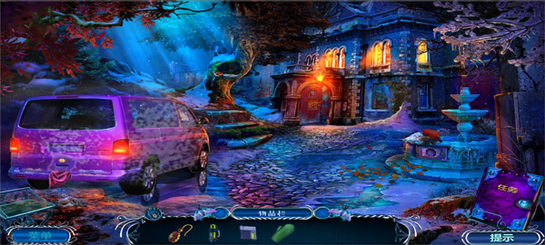 6、使用保温杯里的热水融化汽车后面的冰,拿走布,在树洞里拿走塔罗牌盒子,解锁塔罗牌收集功能,在右边喷泉旁边赶走乌鸦,拿走细枝和没电的手机;
