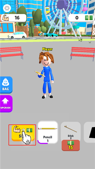 2、进入之后,角色举重的是铅笔,每次是肌肉加1;