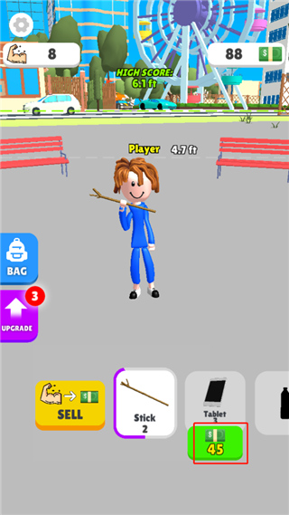 4、用钞票解锁其他物品,举重树枝显示肌肉加2;