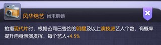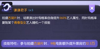 该艺人1技能可兼容“古装剧”,2技能可兼容“战争剧”。