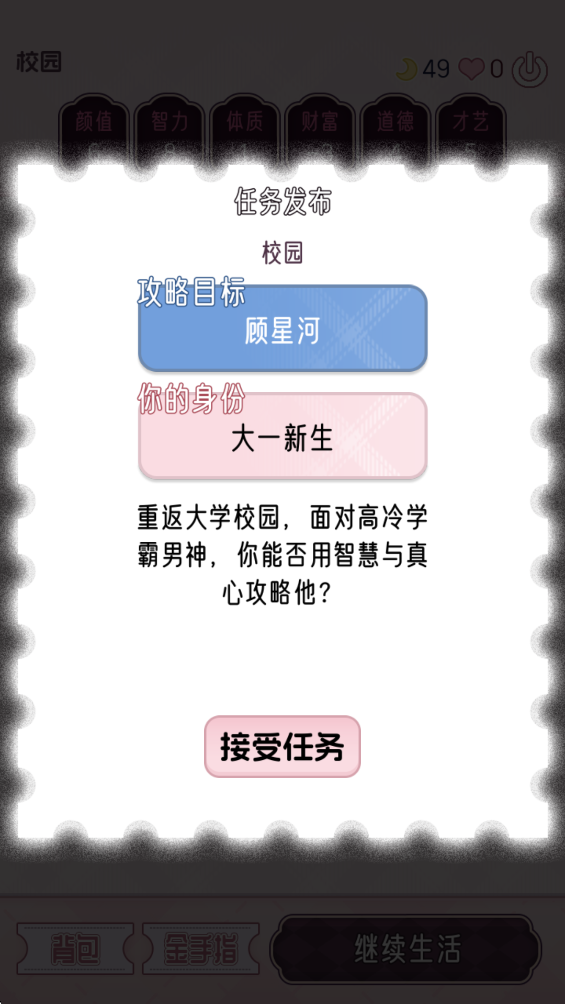 4、接收你的额任务,记住你的身份和攻略目标。