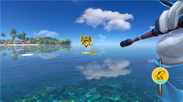 4、长按抛竿并下拉可抛的更远,等待钓位在鱼区即可松手;