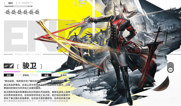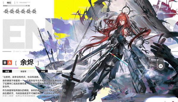 终末地工业的监督员和官方发言人,负责监督各地是否存在安全隐患并上报,需要经常走访各地。近战定位,用佩剑发动范围攻击,被动技能能叠加伤害,前期清图特别强力。