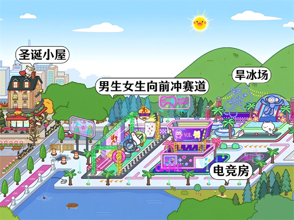 11、学校宿舍、学校教室、派对屋、话剧社、滑板游泳馆、击剑拳击馆、运动场。