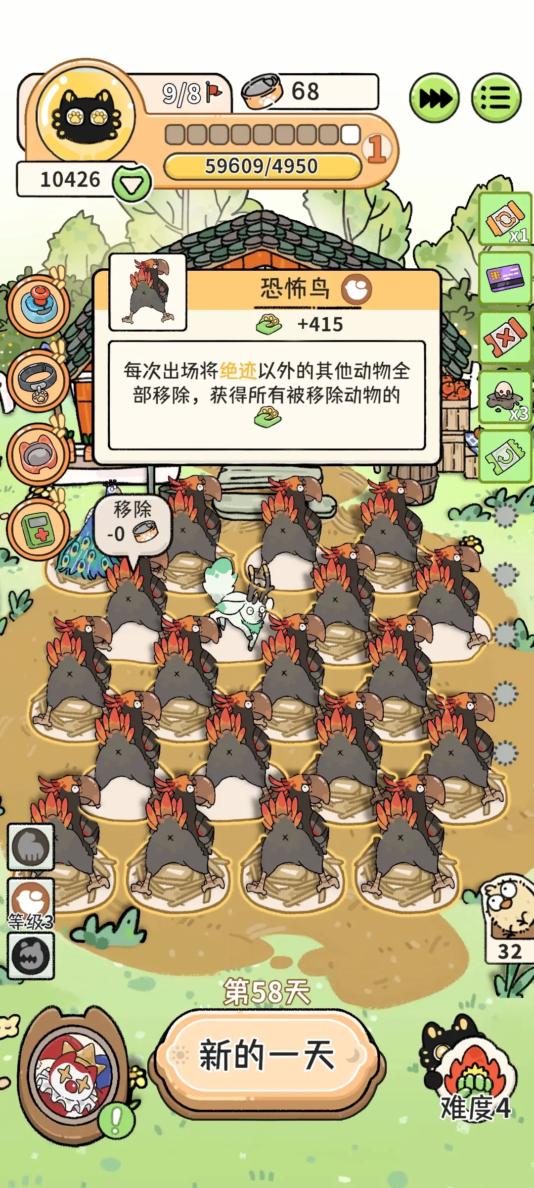 3、选择一个动物点击移除,同样的也是消耗1个罐头。