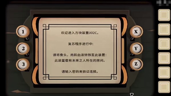 【过去】视角:输入密码【X3Z1Y2】,得到线索;