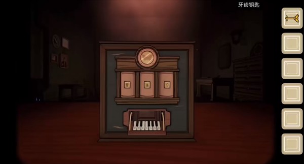 【过去】视角:用钥匙打开机关,提供频率线索,弹奏对应乐谱,得到【牙齿钥匙】;