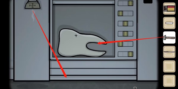 【未来】视角:用锤子砸碎大牙齿,再拖动旁边的吸管,吸取所有牙齿碎片;