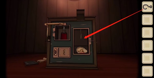 多次点击悬挂的娃娃使它掉落,拾取【钩子】;