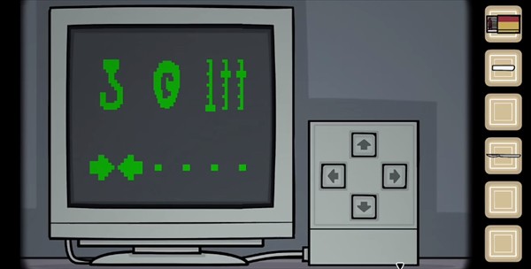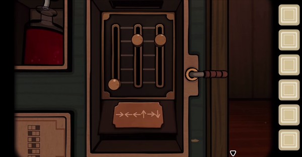 【未来】视角:启动储物柜里的电脑(按任意方向键),给【过去】提供滑块刻度位置的线索,再输入对应的箭头方向密码;