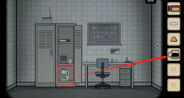 将黑粉末放入储物柜的咖啡机,并且按下红色按钮,获得【咖啡】;