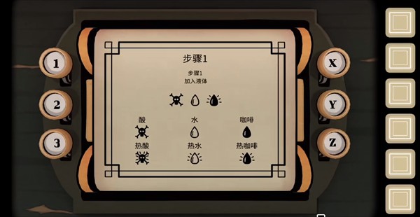 【未来】视角:提供步骤密码,根据线索倒入正确液体;