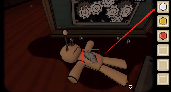 点击打开指针圆盘左边的挡板,然后用巫毒针扎娃娃眼睛,获得【白宝石】;