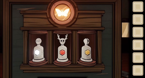 点击停留在装置上的蝴蝶或者蜜蜂,将3个宝石放入对应凹槽;(从左往右:白红金)