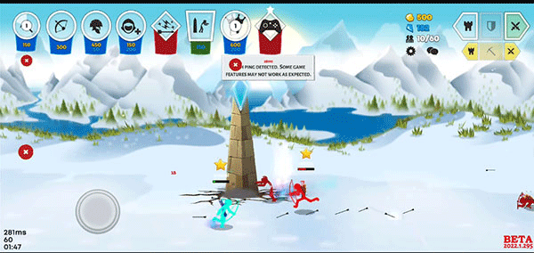 第九关:巨人关卡,先养两名剑士,操控其中一名跟巨人绕走位,另外一名备用,经济上来后全养弓箭手