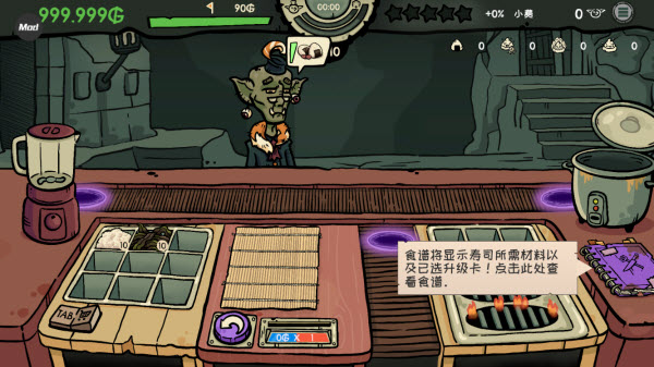 6、在屏幕下方会显示寿司售价,它的计算会随所选食材和升级卡变化。
