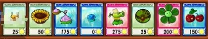 1、白色低级卡(15%概率抽取):三线射手、裂荚射手、豌豆投手、低坚果、双线射手、反向豌豆射手。