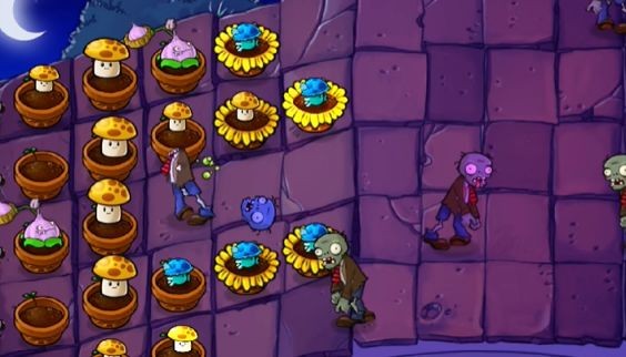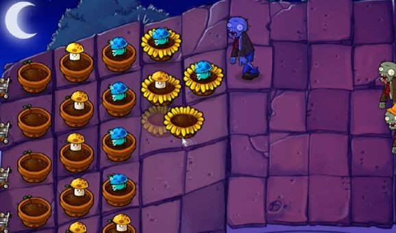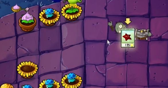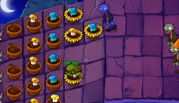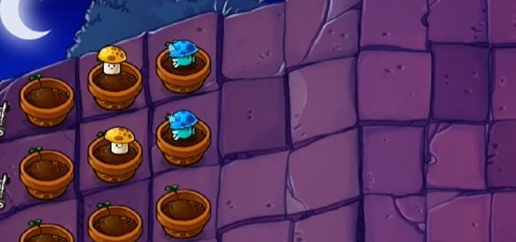 植物选择:向日葵、双子向日葵、樱桃炸弹、卷心菜投手、南瓜头、坚果墙、窝瓜、高坚果墙。新出现的僵尸是蹦极僵尸,会偷花盆。
