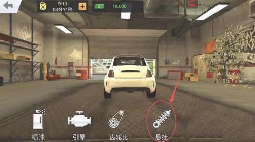 2、在车辆改装界面,点击【悬挂】。