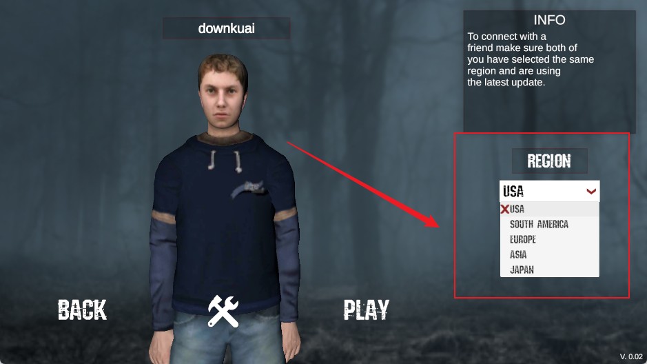 4、选择右侧延迟较低的【Region】以获得更稳定的联机体验。
