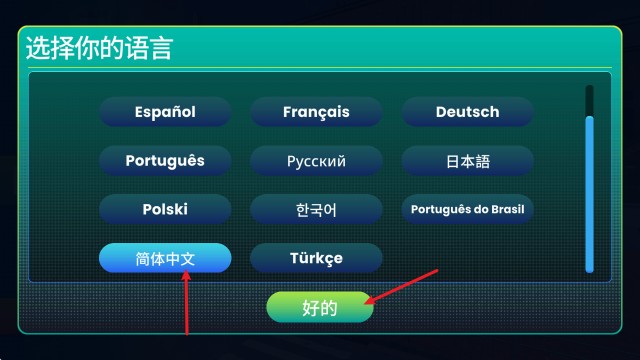 3、在语言列表中选择“简体中文”,点击确认即可完成切换。